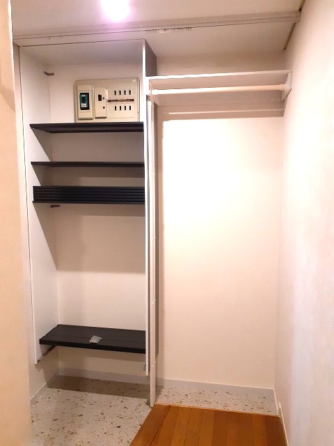 上着などもすっきり収まるオープンタイプの収納へ変更しています。